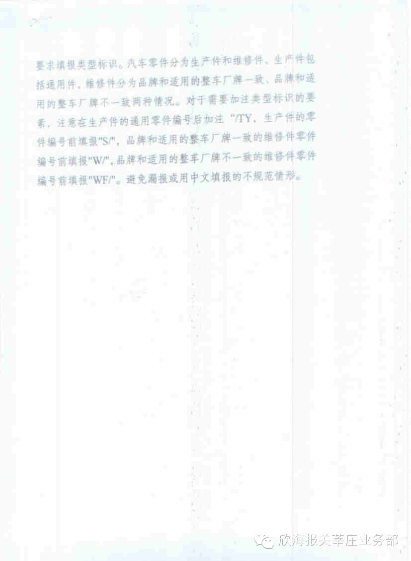 六. 汽车零配件须按2006年64号公告要求及《目录》填报类型标识