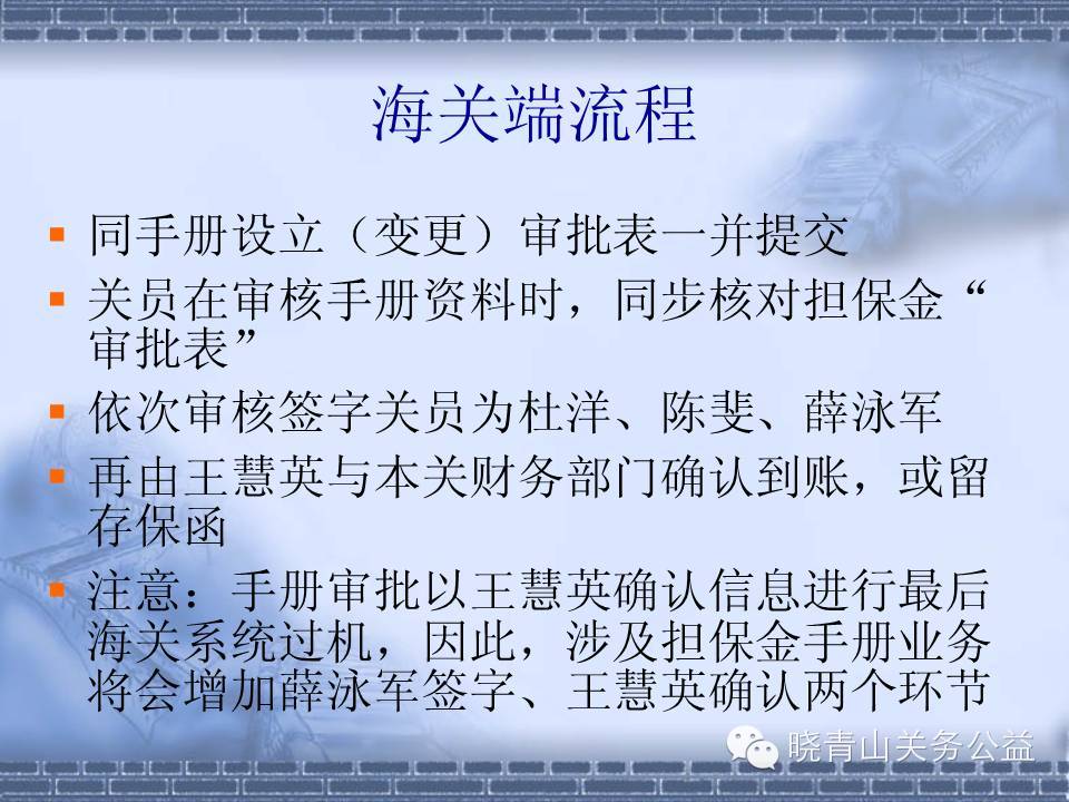 5月30日,针对相关报关公司已经进行了新流程解读,本月开始,将按照新流程严格执行相关操作,我们同时要求各报关公司近期对所属客户企业进行培训。(另,担保金企业端填制规范请联系神码,当天也做了实操讲解)以下是解读PPT。